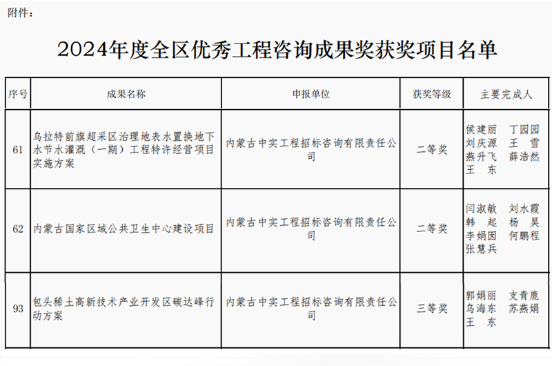 2025-04-169556 次2025年4月16日,内蒙古工程咨询协会公布了2024年度优秀咨询成果奖获奖单位名单,我司取得两个二等奖和一个三等奖,我司专业能力和服务质量再次获得行业的认可。此次获奖,不仅体…